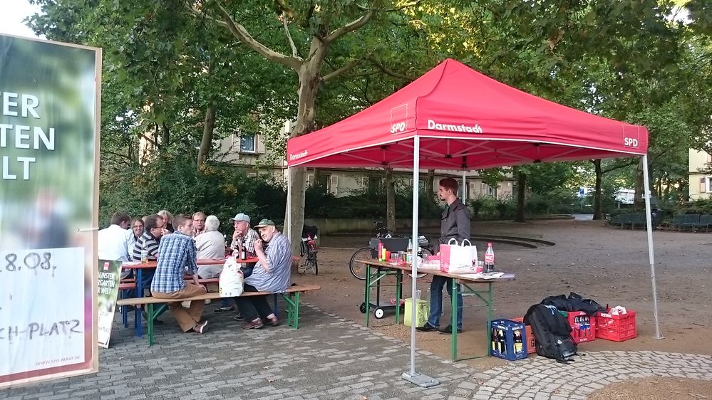 Im August waren wir mit unserem "kleinsten Biergarten der Welt" am Hahne-Schorsch-Platz und der Kirschenallee. Bei frisch gegrillten Würstchen und kühlen Getränken kamen wir mit den Biergartengästen ins Gespräch.