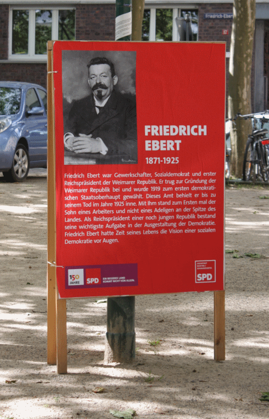 Von der Gründung des Allgemeinen Deutschen Arbeitsvereins durch Ferdinand Lassalle im Jahr 1863 bis zu Willy Brandts Ostpolitik und dem Atomausstieg der heutigen SPD: Die deutsche Sozialdemokratie hat stets politische Akzente gesetzt. Auch im Darmstädter Stadtbild hat die SPD ihre Spuren hinterlassen. Straßen und Plätze im Martins- oder Johannesviertel sind nach bedeutenden Sozialdemokraten benannt. Mit unserer Plakatausstellung in den beiden Vierteln erinnern und informieren wir über Willy Brandt, Friedrich Ebert, Wilhelm Leuschner, Julius Reiber und das ehemalige Gewerkschaftshaus.