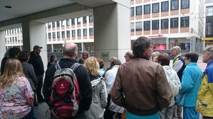 Vom heutigen Regierungspräsidium ausgehend führte Udo Steinbeck die Gruppe quer durch die Darmstädter Innenstadt. Auf der Strecke lag der ehemalige hessische Landtag (heute Hauptstelle der Sparkasse) und das Elternhaus Georg Büchners, der in der heutigen Grafenstraße aufwuchs. In der knapp zwei Stunden dauernden Führung zeigte Udo Steinbeck, wie viele historisch spannende Orte in der Darmstädter Innenstadt zu entdecken sind.