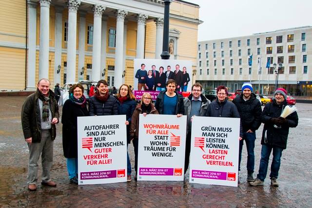 Zu einer gemeinsamen Plakataktion haben sich die Aktiven der Darmstädter SPD auf dem Karolinenplatz im Herzen der Stadt zu ihrem Wahlkampfauftakt getroffen. Von hier sind die Kandidatinnen und Kandidaten zur Stadtverordnetenversammlung und weitere HelferInnen der Darmstädter SPD ausgeschwärmt, um die ersten Wahlplakate dieses Wahlkampfes aufzuhängen.